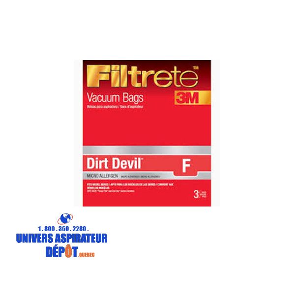 $6.99 quantité de Sac Dirt Devil F Ajouter au panier Catégories : Accessoires Sacs Tag: Dirt Devil Description Sacs aspirateur Dirt Devil Type F Pour les modèles Dirt Devil Power Pack et Can Vac Series Canisters 3 sacs par paquets