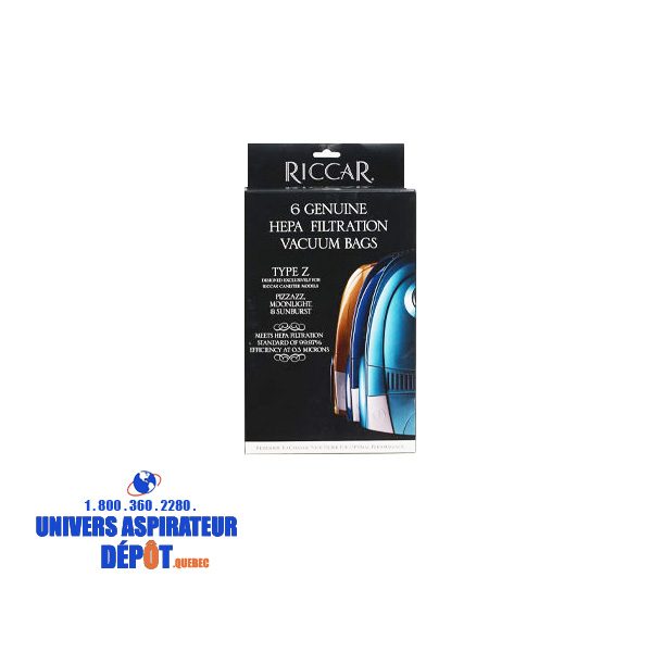 $28.50 quantité de Sac Riccar Z Ajouter au panier Catégories : Accessoires Sacs Description Sacs aspirateur Hepa Riccar Type Z Pour les modèles Pizzazz, Moonlight et Sunburst 6 sacs par paquet